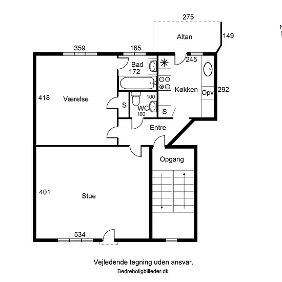 Gennemsnitsprisen er 92 kr / måned per m².