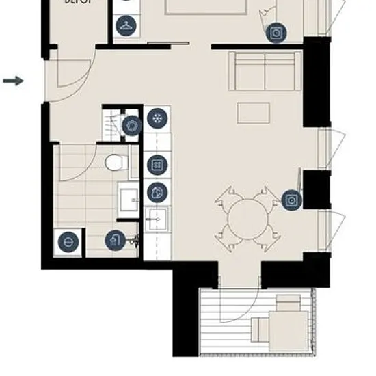 2-værelses med egen terrasse