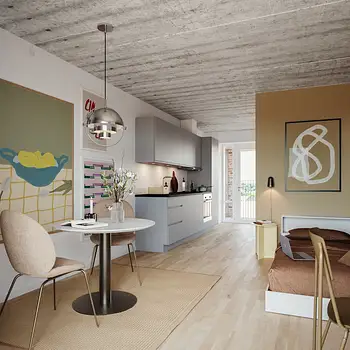- 1 værelses lejeboliger i Viby J koster i gennemsnit 5.784 kr, og de er i gennemsnit 27 m²