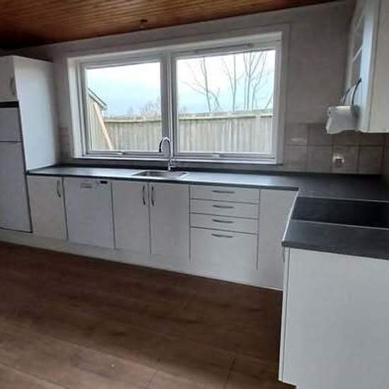 Rækkehus i Rødby til leje 83 kvadratmeter, indeholder stue, køkken, 2 værelser, badeværelse, bryggers og entre Opvarmning Fjernvarme Husleje kr. 6.000,00 Indskud kr. 18.000,00 Huset er nyrenoveret med nyt køkken og badeværelse