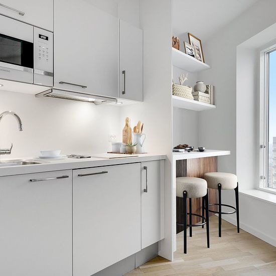 I dette lejemål byder vi på en lys 1-værelses med en åben planløsning, her er der god plads til den københavnske hverdag for både singler og par. Med de store indbydende vinduespartier og placering nær den lokale park, har lejligheden et helt fantastisk lysindfald. Boligen har sit eget badeværelse med separat brus. Der er gulvvarme i hele lejemålet, som gør det varmt og hjemligt selv i de kolde vintermåneder. Der er installeret moderne og stilrent køkken, som indeholder både køleskab med fryseboks, kogeblus og en mikrobølgeovn. Placeret på G...