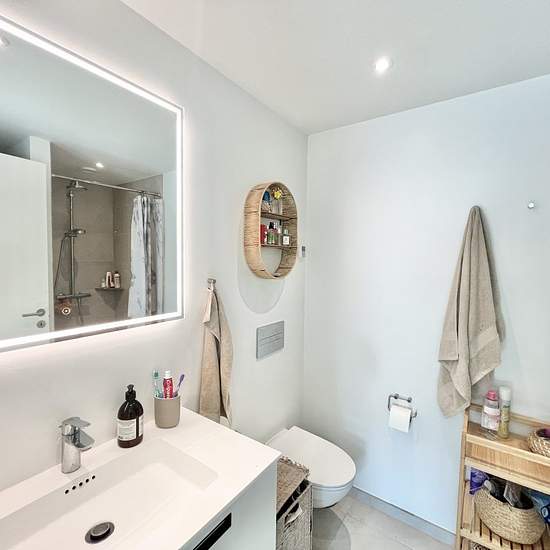 Velkommen til denne nybyggede 1-værelses lejlighed på Østre Havnepark i Aalborg - tæt på Øgaden og centrum. Boligen kommer med et fuldudstyret Svanekøkken med køle/fryseskab, opvaskemaskine, kogeplade, ovn og emhætte. Grundet de store vinduespartier og lejlighedens sydvendte placering er der altid et fint lysindfald. I hele boligen er der installeret gulvvarme og ventilationsanlæg, mens der i badeværelset er installeret en praktisk vaskesøjle. I den opvarmede og aflåste kælder finder du cykelparkering samt lejlighedens tilhørende depotru...