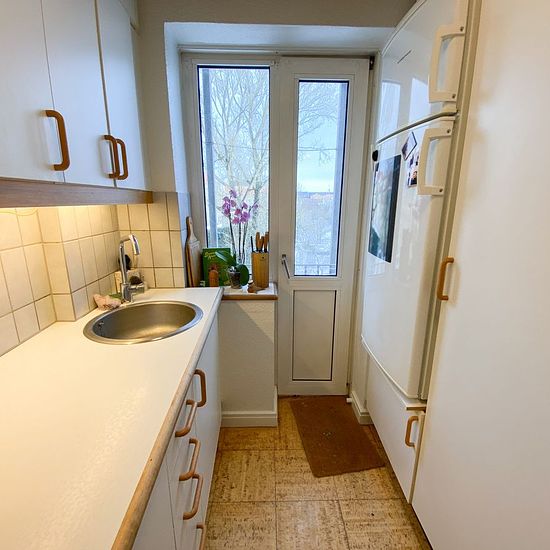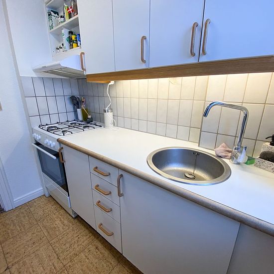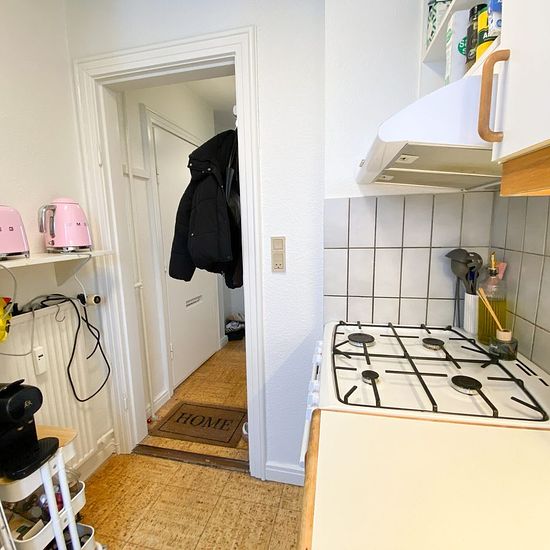 Lejligheden er bestående af en mindre entré, der først fører ud på badeværelse. Der er bruser i midten, og det holder det separeret. Så har vi køkkenet, som er super fint i hvide farver og har udgang til en lille altan. Til sidst har vi lejlighedens værelse, som er et godt rum med flotte gulve. Det er nemt at indrette, så man godt kan have lidt af hvert derinde. Herfra er der også en udgang til en lille altan. Område: Reberbansgade ligger centralt i Aalborgs Vestby, tæt på midtbyen og med kort afstand til både handel, kultur og offentlig tr...