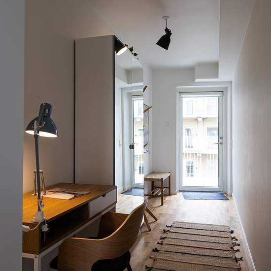 Møbleret 1-værelses lejlighed med to altaner. Lys og velindrettet 1-værelses lejlighed med den bedste beliggenhed på Frederiksbjerg. Udgang til altaner fra både for- og bagside af lejligheden. Adgang til 7 fælles tagterrasser med en fantastisk udsigt samt til et unikt gårdmiljø med grønne områder, hængekøjer og orangeri. Er dette noget for dig så skal du være en af de nye lejere på Colosseum Aarhus. Lejligheden er 46 m 2. Pris pr. md. 10.900,- inkl. moms Depositum: 10.900 kr. Leje er inkl. vand, varme, el og Internet.