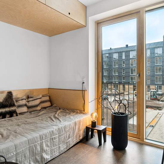 Denne velindrettede 1-værelses lejlighed udnytter hver eneste kvadratmeter optimalt. De fleksible multimøbler samler flere funktioner i ét og skaber en overraskende fornemmelse af plads trods det kompakte format. Det giver dig mulighed for at bo mindre, men leve større – med mere tid til rejser, oplevelser, naturen og byens puls. Det centrale multimøbel fungerer både som sofa og seng og er omkranset af integrerede skabe, hylder og gennemtænkt opbevaring fra gulv til loft. Ét møbel med mange funktioner og masser af luft i hverdagen. Køkkenet ...