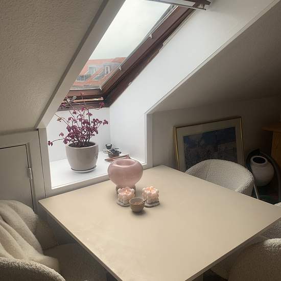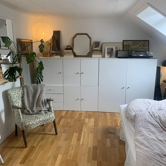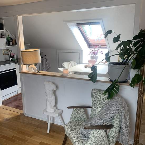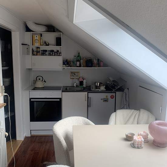 Charmerende 1-værelses bolig Hyggelig 1-værelses bolig med eget te-køkken udstyret med komfur, emhætte og køleskab. Boligen er charmerende med skråvægge og god plads til både spisebord, seng og skabsplads. Badeværelset deles med naboen, og boligen vil passe særligt godt til den studerende. I ejendommen er der fællesvaskeri, plads til cykler samt opbevaringsmuligheder og der er et hyggeligt gårdanlæg til fællesbrug. Boligen er beliggende på Langenæs, der ligger tæt på det skønne Frederiksbjerg område, hvor hyggelige gader, caféer, og ind...