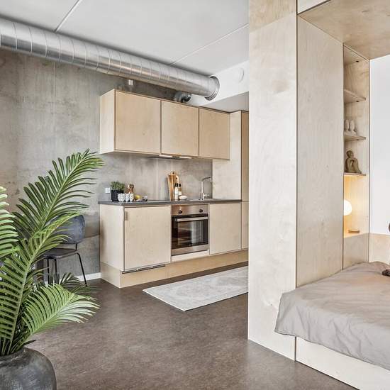 Teglgårdens studio-lejligheder er et small living koncept skabt til alle, der drømmer om at downsize hverdagen. Her får du en flot lejlighed midt i Trælasten og i et byggeri med bæredygtige tiltag med plads til fællesskab, naboskab og nærvær. 1-værelseslejlighederne er indrettet med fleksible multimøbler, der samler flere funktioner i ét og udnytter hver eneste kvadratmeter. Det giver en overraskende rummelighed trods et lille areal. Og så kan du bo mindre og få plads til mere af det, der betyder noget for dig – plads til at opleve, plads ti...