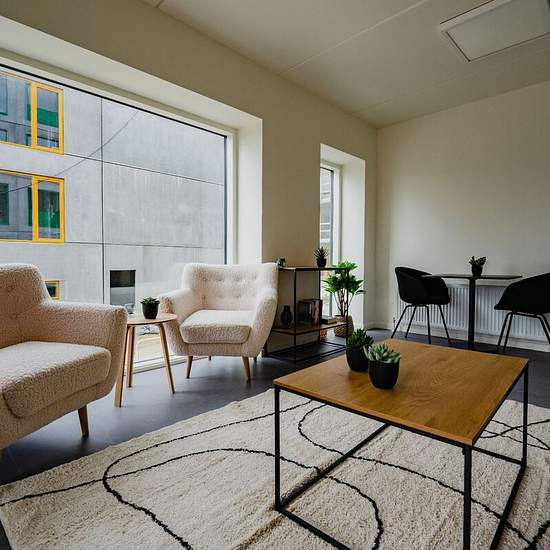 Blækhus Aarhus tilbyder 319 fantastiske og fuldt servicerede lejeboliger (30-35m2) med eget køkken, rummeligt badeværelse, stue med indbyggede skabe og fransk altan. En række fordele, der gør Blækhus Aarhus til et skønt sted at bo: - 10 fællesrum med tilhørende altaner. - Tagterrasse med petanquebane og udsigt udover Aarhus. - Mulighed for lån af lokaler til større forsamlinger. - Fællesarealer i de ikoniske lokaler i nabobygningen ”Kulturbunkeren”, hvor du kan mødes med din studiegruppe. - Byens måske bedste beliggenhed. Placeringen er både...