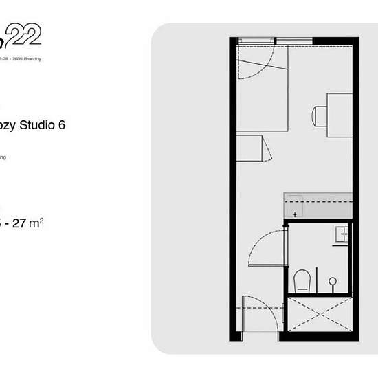 Om Studio 22 Studio 22 er et moderne bofællesskab skabt til studerende og young professionals under 35 år. Her får du både privatliv og fællesskab – med madklubber, kreative værksteder, studieområder og hyggelige lounges. Du kan reparere din cykel, lave kreative projekter, deltage i sociale events – eller bare slappe af i din egen bolig. Din bolig indeholder - Fuldt møbleret: skrivebord, lampe, stol, gardiner, garderobeskab og opbevaring - Eget badeværelse med bruser, håndvask og toilet - Lille tekøkken med kogeplade, emhætte, vask og køle...