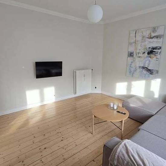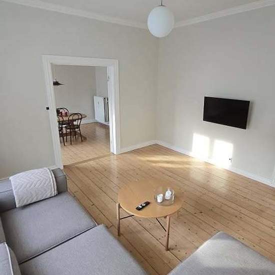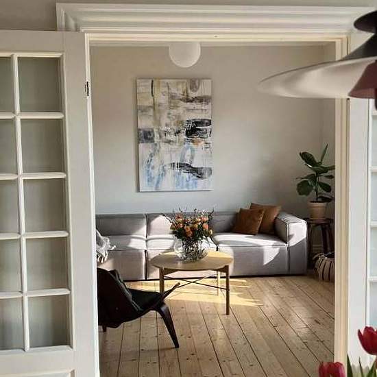Lys herskabslejlighed i hjertet af Esbjerg på 86 m² + 16 m² kælderrum Adresse: Niels Juels Gade Nu udlejes denne skønne, lyse herskabslejlighed med højt til loftet, flotte detaljer og masser af charme. Perfekt til enlig, par – eller som delelejlighed, da de to stuer er adskilt med dobbeltefranske døre, så man kun bruger én som fælles opholdsrum. Boligen indeholder: - Entré/fordelingsgang med god skabsplads samt plads til vaskemaskine og tørretumbler - To store, sammenhængende stuer med smukke dobbelte franske døre - Stort soveværelse med rum...
