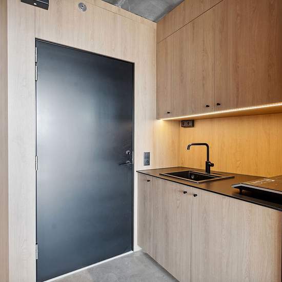 1-værelses Lejlighed på 30 m² i Esbjerg Grådybet 73B, 7. 1, 6700 Esbjerg A Place To Esbjerg - Lejemålsnr. 9-740-201 Fuldt møblerede lejligheder hos A Place To Esbjerg I centrum af Esbjerg finder du A Place To, som består af 214 møblerede lejligheder fordelt i 2 bygninger. Boligerne er alle 1 værelses og er mellem 30 og 53 kvm. Boligerne er fuldt møbleret med Hay designmøbler og er klar til indflytning. I denne etværelses lejlighed får du: - Fuldt møbleret lejlighed med Hay møbler - Egen alten - Kitchenette med køleskab, klargjort til mikro/k...