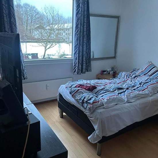 Lejligheden på 65 m² byder på en veldisponeret planløsning med lyse og indbydende rum. Boligen rummer en rummelig stue med plads til både sofa- og spiseafdeling, et funktionelt køkken med god skabsplads, et soveværelse i en behagelig størrelse samt et pænt badeværelse. De store vinduespartier sikrer et flot lysindfald og skaber en åben og behagelig atmosfære i hele lejligheden. Planløsningen udnytter kvadratmeterne optimalt, hvilket gør boligen ideel for både singler, par eller som delevenlig lejlighed Depositum 3 måneders leje Forudbetalt l...