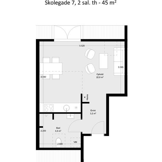 - 1 værelse