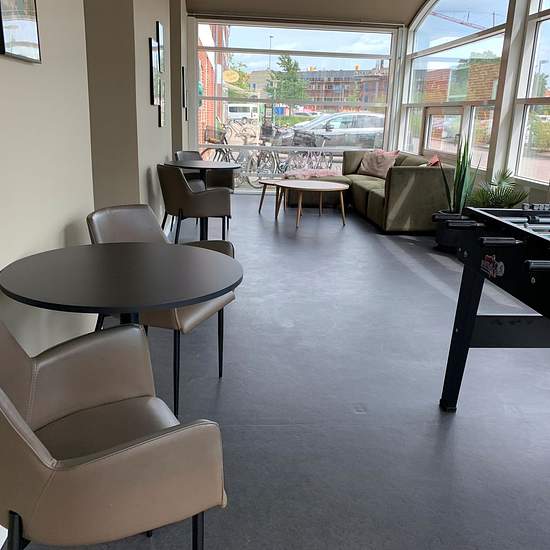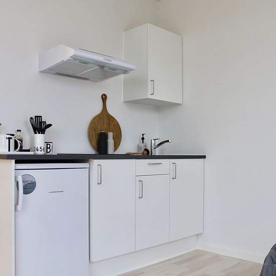 Moderne studiebolig i hjertet af Horsens C De 44 lyse 1-værelseslejligheder indeholder alle eget køkken, bad og toilet samt større entré og garderobeplads. Hver lejlighed har desuden: • Gratis internet. • Gratis strøm. • Seng og lænestol. • Flere af lejlighederne har også skrivebord, bordlampe, garderobespejl, sengelampe og sengebord. • Eget depotrum. • Køkkenet har induktionskogeplader, køleskab med frostboks og emhætte. Fællesfaciliteterne i kollegiet er blandt andet: • Betalingsvaskeri med moderne vaskemaskiner og tørretumblere. • Stø...