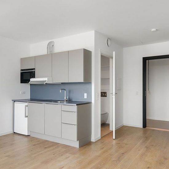 Lyse, moderne ungdomsboliger med altaner og udsigt over Nordvest og Nørrebro. Lygten 37, 2400 København NV. Nu kan du bo utroligt godt og fornuftigt småt midt mellem det livlige Nørrebro og blomstrende Nordvest. .. Se mere De 75 boliger, fordelt på tredje, fjerde og femte sal, varierer i form og størrelse fra 1 – 2 værelses lejligheder – fælles for dem er, at de har altan og indeholder lige det, du har brug for i hverdagen. Et lille køkken med køl, frys og mikroovn, et stort rummeligt badeværelse med brus og hylder, alle lejligheder har ...