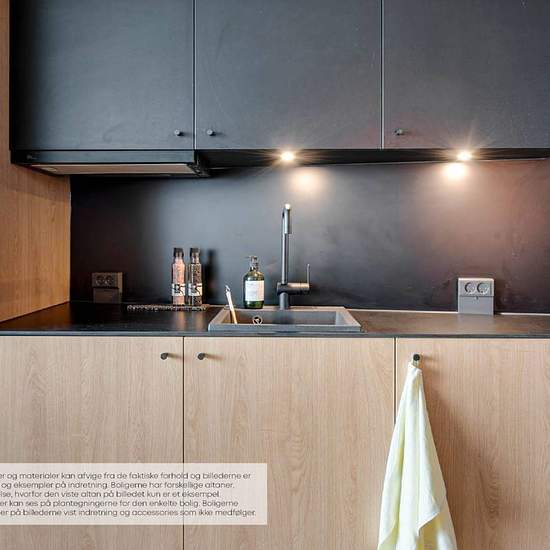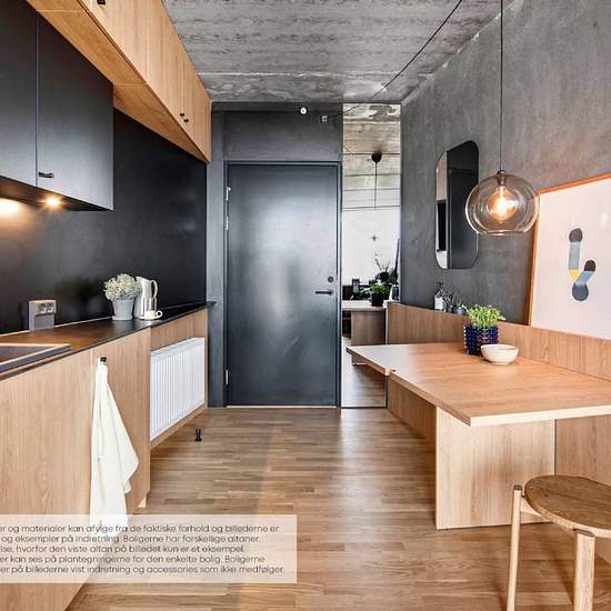 Lejlighederne er designet med fleksibilitet in mente. Møblerne er designet med flere funktioner, hvilket gør det nemt at skifte fra stue til soveværelse eller arbejdsområde til spisestue. Det er smart living, men stadig fuld af muligheder. Alle lejlighederne har et nordisk designkøkken lavet i samarbejde med det kendte, danske køkkenfirma Reform. Interiøret er specialdesignet af arkitekten, og rummer innovative løsninger, der optimerer hverdagslivet.
