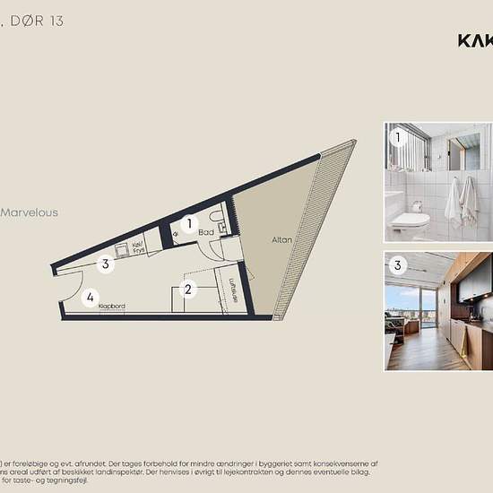 Lejlighederne er designet med fleksibilitet in mente. Møblerne er designet med flere funktioner, hvilket gør det nemt at skifte fra stue til soveværelse eller arbejdsområde til spisestue. Det er smart living, men stadig fuld af muligheder. Alle lejlighederne har et nordisk designkøkken lavet i samarbejde med det kendte, danske køkkenfirma Reform. Interiøret er specialdesignet af arkitekten, og rummer innovative løsninger, der optimerer hverdagslivet.