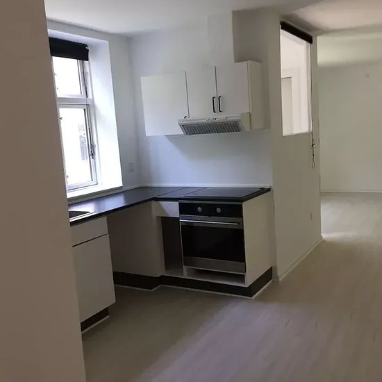 Nymalet lejlighed i stueplan med egen indgang med stue i sammenhæng med køkken, nyere badeværelse samt 1 soveværelse. 2 disponible rum, egnet til f.eks. walk-in closet eller hjemmekontor. Hyggeligt gårdmiljø. Husdyr ikke tilladt. Aconto: 800,- pr. md.