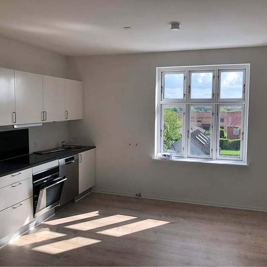 Yderst charmerende og nymalet lejlighed i Horsens,er indflytningsklar. Skøn lejlighed med fritstående bjælker, i 2 plan. 101 kvm Beliggende i roligt kvarter på blind vej Adgang til have der deles med underbo i stuen. Leje pr mdr. 7475kr + aconto 850 Depositum: 22.425kr