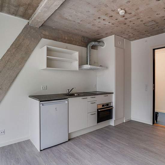 Velkommen til Tigergården på Østre Stationsvej 2F i Odense C. Her udlejer vi 1-værelses lejligheder og enkelte 2-værelses lejligheder. Udover din egen bolig er der flere fællesrum i hele bygningen samt et festlokale i kælderen. Hårde hvidevarer Der er et køle- og fryseskab, ovn, 2-zoners induktionskogeplader og emhætte i lejlighederne. Vaskemaskine og tørretumbler findes i kælderen. Husdyr Lejere kan ansøge om tilladelse til at holde én kat. Se vores samlede husdyrsregler her. Parkering Det er muligt at leje en p-plads i en parkeringskæld...