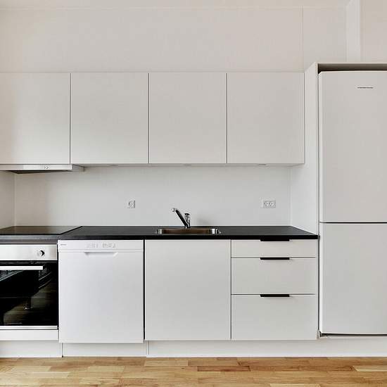 Alle lejligheder har et køkken-alrum i åben forbindelse med stue. I de ét-værelses lejligheder fungerer køkken-alrummet ligeledes som soveværelse. Ellers har du ét eller to separate værelser. Badeværelset er velindrettet med vaskefaciliteter og gulvvarme. Alle lejemål har egen terrasse eller altan. Hårde hvidevarer Boligerne har alt i hårde hvidevarer inklusive vaskemaskine, tørretumbler og opvaskemaskine. Husdyr Lejere kan ansøge om tilladelse til at holde indekat og hund på adressen. Udekatte er ikke tilladt. Se vores samlede husdyrsreg...