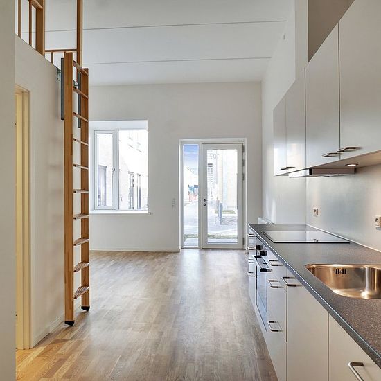 På Møllevangen 1-141 finder du 1- til 6-værelses lejligheder. Der er altså plads til alle og lige det hjem, du drømmer om. De mindre lejligheder henvender sig til singlen, den studerende eller det unge par, mens de større lejligheder er oplagte til familier. Alle lejligheder har et smukt lysindfald fra boligernes store vinduer. Flere af lejlighederne er i to etager, som skaber et naturligt skel mellem det fælles opholdsrum med køkken-alrum og boligens værelser. De fleste af lejlighederne har egen altan eller terrasse. Hårde hvidevarer Der ...