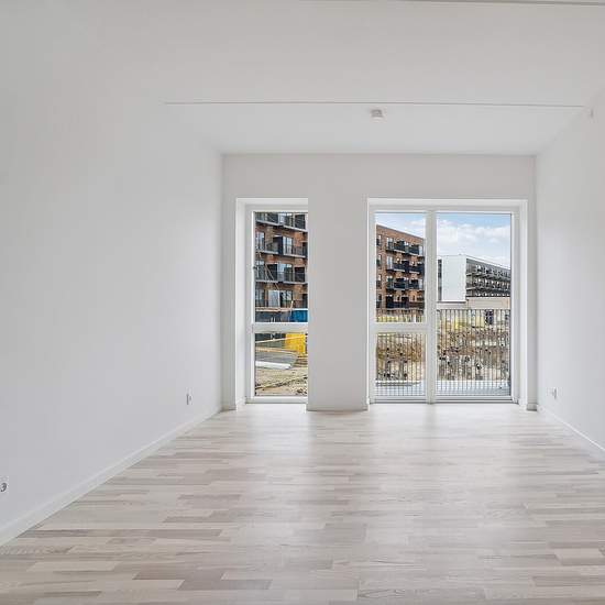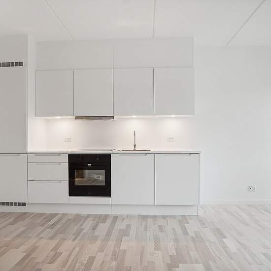 Flot og moderne 1-værelses lejlighed Denne moderne 1-værelses lejlighed byder på et nyt køkken der indeholder både opvaskemaskine, kølefryseskab, ovn, keramisk kogeplade og emhætte. Derudover er der et praktisk depotrum med plads til opbevaring. Badeværelset er også moderne, og udstyret med både vaskemaskine og tørretumbler. OBS. billederne er fra en lignende lejlighed i ejendommen. I ejendommen er der et stort fællesrum med tilhørende køkken og to toiletter, som kan lejes til private arrangementer. På 5. etage er der en stor fælles tag...