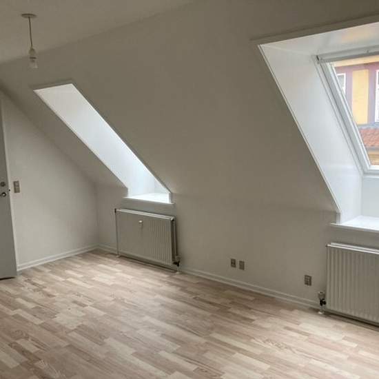 1-værelses bylejlighed, beliggende midt i Svendborg centrum. Indeholder værelse med lille thekøkken med køleskab og kogeplader og tøjskab samt badeværelse. Ask laminatgulv i værelset. Vand er inklusiv i huslejen. Aconto beløb inkluderer varme, el og internet. Fælles vaskeri. Mulighed for cykelparkering i fællesgården. Energimærke: D