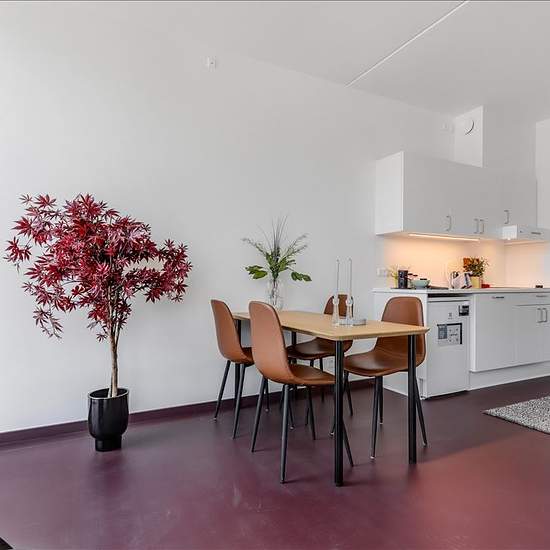 Nu kan du få nyt hjem i Blækhus Valby M. Det unikke projekt beliggende ved området Valby Maskinfabrik består af 125 attraktive 1-værelses lejligheder. Lejlighederne er velindrettede og opført i lækre materialer. Stilen er moderne med rustikke betonvægge i gangene, højt til loftet, eget køkken og tagterrasse på de øverst beliggende boliger. Hvorfor bo i Blækhus Valby M? - Central beliggenhed - Rummelig 1-værelses bolig - Et moderne udtryk - Højt til loftet - Store vinduespartier OBS - Billederne er taget i en prøvebolig Nu kan du få nyt hjem ...