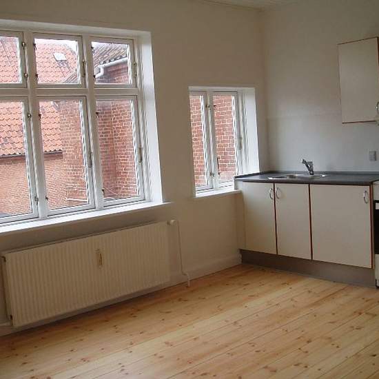 1-værelses lejlighed beliggende i mindre ejendom lige udenfor voldene. Der er fælles vaskeri i kælderen. Indeholder lille entre og værelse med stort køkken på den ene endevæg. Toilet og bad. Huslejen er inkl. vand. Der kan gives tilladelse til bestemte husdyr efter aftale, dog ikke alle typer og IKKE kat. Mulighed for tidligere overtagelse.