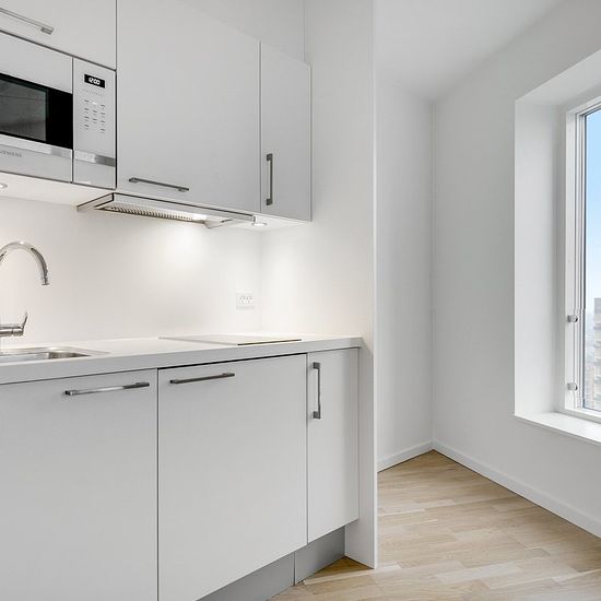 I dette lejemål byder vi på en lys 1-værelses med en åben planløsning, her er der god plads til den københavnske hverdag for både singler og par. Med de store indbydende vinduespartier og placering nær den lokale park, har lejligheden et helt fantastisk lysindfald. Boligen har sit eget badeværelse med separat brus. Der er gulvvarme i hele lejemålet, som gør det varmt og hjemligt selv i de kolde vintermåneder. Der er installeret moderne og stilrent køkken, som indeholder både køleskab med fryseboks, kogeblus og en mikrobølgeovn. Placeret på G...