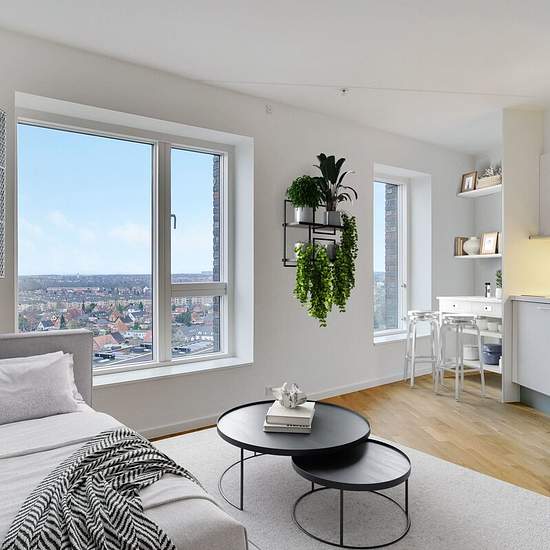 Velkommen til Akeleje Hus Placeret på Grønttorvet udbyder vi her 189 lejemål. Ejendommen består primært af 1-værelses boliger og et par 2-værelses. Ejendommen er 18 etager og byder på en enestående udsigt udover Valby ind mod København. I ejendommen er der fokus på fede fælleslokaler inklusiv et 2 etagers fællesrum med en stor tagterrasse til. Herved byder ejendommen også på cykelparkering med cykelværksted, fede fælleskøkkener, samt fællesvaskeri. Alle boligerne byder på: - Moderne badeværelse med separat brus - Gulvvarme i hele lejemålet -...