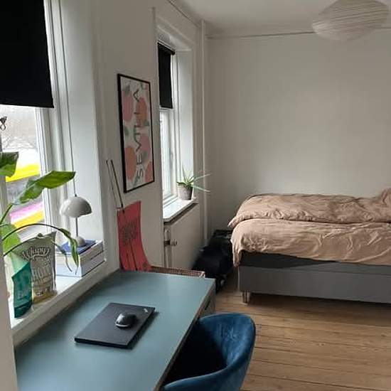 **Ny roomie søges til et Indrettet værelse i en begrænset periode fra 1/2-31/7 ** Da min roomie Jonathan skal i praktik i Århus i 6 måneder, fremlejes hans værelse i 6 måneder. Lejligheden er beliggende i kartoffelrækkerne på Østerbro, og er en lys 3-værelses lejlighed på 70 kvm med to separate værelser, en fin stue, køkken, og badeværelse. Værelset du kan leje er ca. 10 kvm, og ligger med udsigt til Sortedamssø, med 10 minutters gang til Østerport og trianglens metrostation. Som man kan se på billedet, er der alt du skal bruge på vær...