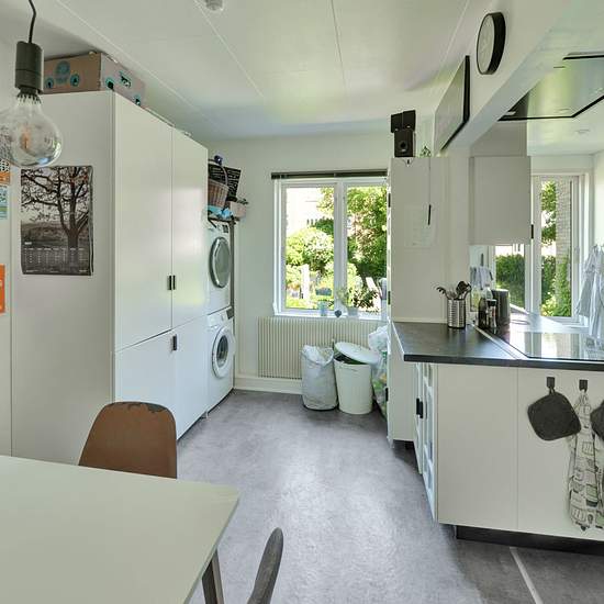 Træd ind i denne imponerende ejendom på 203 kvadratmeter, der strækker sig over stuelejlighed, 1., 2. og 3. sal. Den charmerende stuelejlighed på ca. 30 kvadratmeter byder på eget badeværelse og køkken, mens de resterende 7 værelser, 2 badeværelser, 1 toilet, 1 the-køkken og 1 køkkenalrum med moderne faciliteter som opvaskemaskine og vaskesøjle, skaber et perfekt fællesskab for beboerne. Ejendommen byder på en baghave med plads til cykelparkering samt en terrasse og et fælles overdækket udeareal, der indbyder til hyggelige stunder udendørs. ...