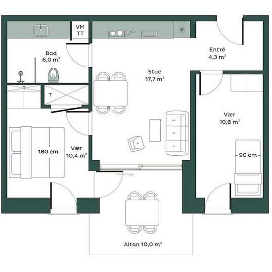 - 1 værelse