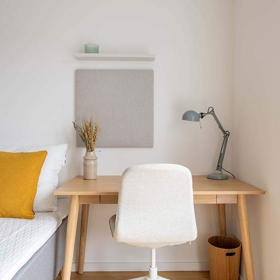 High-quality bed with bedspread, duvet and pillows. Bedside table with reading lamp. Desk with desk chair and desk lamp. Wardrobe with drawers and hanging space. Storage boxes underneath the bed. Curtains, mirror, laundry basket, trash can, rugs and decoration (not all on photos) 1) cancellation made 60 or more days before the Check-in date: For the Tenant: reimbursement of 100% of the First Instalment minus the amount of the Roomless Fees. 2) cancellation made between the 59th and 30th day before the Check-in date: For the Tenant: refund o...