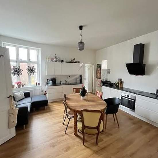 **Værelse til leje i stor lejlighed på Guldsmedgade fra januar-juni med mulighed for forlængelse** Hej alle, Vores roomie skal arbejde i København og fremlejer derfor sit værelse på Guldsmedgade 22 fra start januar til og med juni. Værelset er ca. 13 m² og ligger i Latinerkvarteret som en del af et hyggeligt bofællesskab. Det er en 5-værelses lejlighed på 144 m² bestående af fire værelser, entré, to mindre gange, et køkken/alrum (med sofa og opvaskemaskine) og et rummeligt badeværelse med vaskemaskine og tørretumbler. Praktisk info: * Vær...