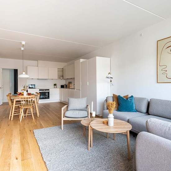 Description - space Gertrud is a fully furnished and equipped 3-bedroom apartment for 3 individuals in a residential and calm neighbourhood. The apartment has a shared living room with a modern open kitchen and attached balcony. There is one spacious bathroom. Room 2 has a private balcony attached and room 3 has a big walk-in closet. Description - area Sydhavnen is a neighbourhood just south of the city centre that mixes nature, an architectural boom and authentic harbour-side living. This former fishing area is experiencing an architectural...