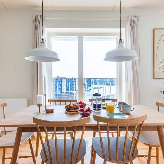 Description - space This modern apartment has beautiful wooden floors and large double glass windows and central heating. There are 4 bedrooms, an open kitchen with dining area and a lounge area with TV. There is 1 shared bathroom with a laundry machine and dryer. Room 4 has a private ensuite bathroom. From the kitchen / livingroom you have access to 2 balconies, 1 large and 1 medium sized, both with supreme views. The building has a green backyard with tables and benches. 50 meters from the backyard, at the water front, there is an event ro...