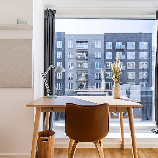 High-quality bed with bedspread, duvet and pillows. Bedside table with reading lamp. Desk with desk chair and desk lamp. Wardrobe with drawers and hanging space. Storage boxes underneath the bed. Curtains, mirror, laundry basket, trash can, rugs and decoration (not all on photos) 1) cancellation made 60 or more days before the Check-in date: For the Tenant: reimbursement of 100% of the First Instalment minus the amount of the Roomless Fees. 2) cancellation made between the 59th and 30th day before the Check-in date: For the Tenant: refund o...