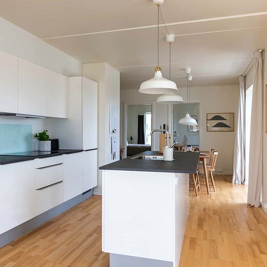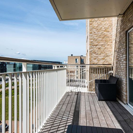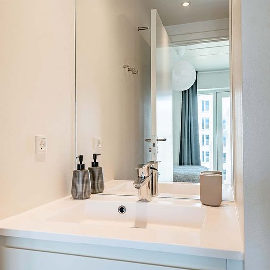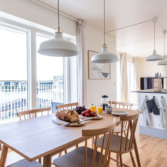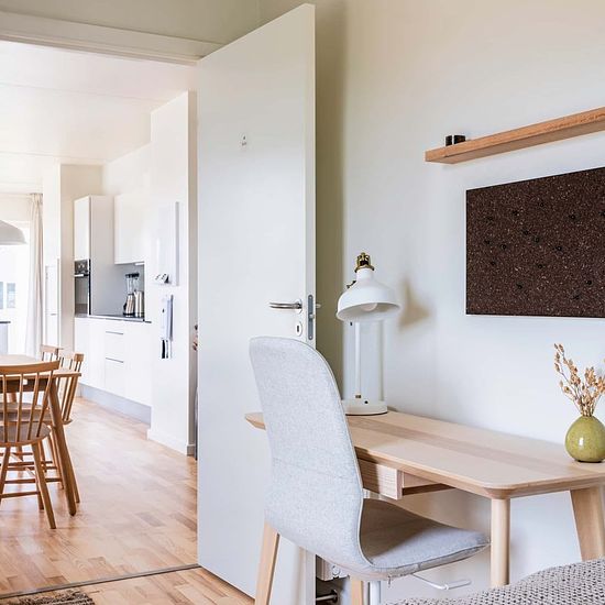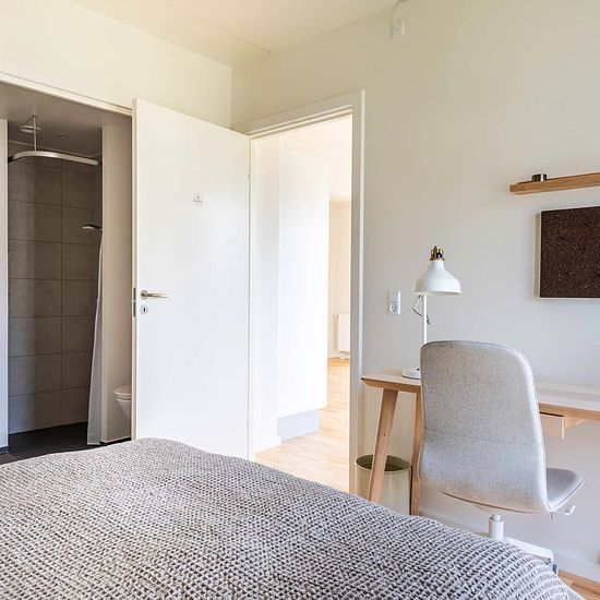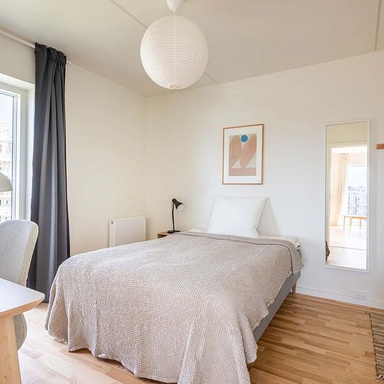 Description - space This modern apartment has beautiful wooden floors and large double glass windows and central heating. There are 4 bedrooms, an open kitchen with dining area and a lounge area with TV. There is 1 shared bathroom with a laundry machine and dryer. From the kitchen / livingroom you have access to the 2 large shared balconies and the building has a green backyard with tables and benches. 50 meters from the backyard, at the water front, there is an event room which can be booked for social events exclusively by the tenants in t...