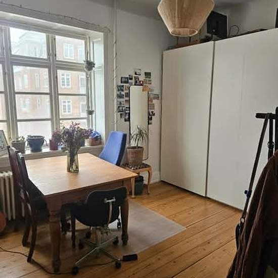 **Fremleje af møbleret værelse i hyggelig lejlighed i Frederiksbjerg, Aarhus C.** Jeg fremlejer mit værelse i perioden fra d. 1. marts til d. 1. juli. 2026 da jeg tager på højskole. Perioden er fleksibel. **Lidt om lejligheden:** Jeg fremlejer mit værelse ca. 15 m2 på De Mezasvej, i Frederiksbjerg. Møblerne på billederne bliver. Lejen ligger på 3.895,- kr./mdr. inkl. aconto vand, varme og internet (ekskl. el og før boligstøtte) + 3 mdr. depositum. Lejligheden er 59 m2 på 2. sal og har 2 værelser, et køkken med lille opvaskemaskine, badev...