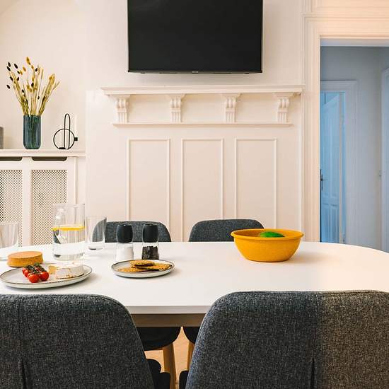 Description - space The apartment consists of 6 single rooms, 2 bathrooms and 1 open kitchen and lounge area. The apartment is located on upper ground floor and has special sound protection windows. The building is from 1894 and has kept the charm of the old days. In room 3, 4 and 5 you’ll still find historic fireplaces and most rooms have stuccoed ceilings. Another highlight of the building is the shared rooftop terrace. Description - area Copenhagen's city centre is definitely the most historic and iconic part of the city with it's small, ...