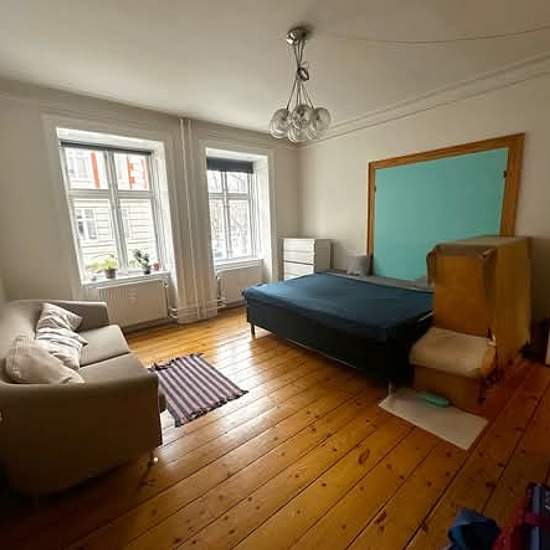 Hi there We’re looking for a new roommate to join our housing association on lovely Blågårdsgade. The apartment has four rooms, a shared kitchen and bathroom, and access to a neat and well-kept laundry room in the basement for residents. There’s also a spacious, green courtyard with trees and bicycle sheds — a really nice little oasis right in the city. The room for rent is about 18 sqm and filled with light, offering a beautiful view over Blågårds Plads. It’s rented partly furnished. There is a large bed with several roomy drawers. You’...