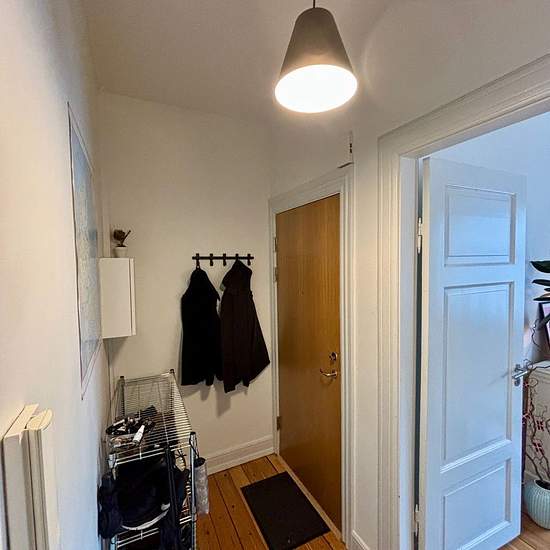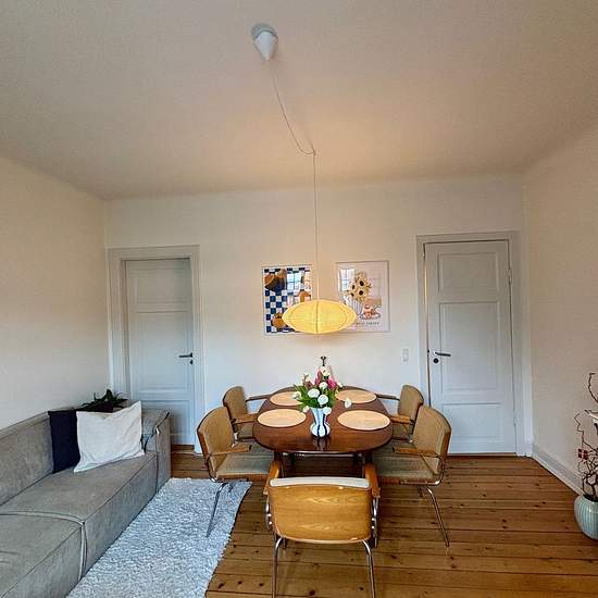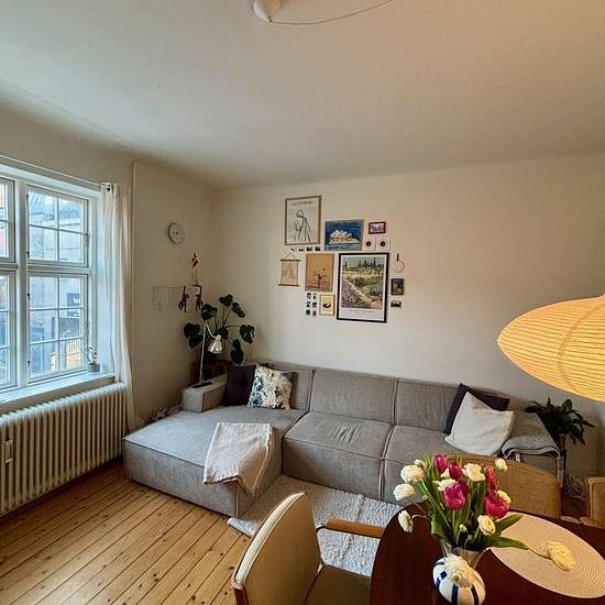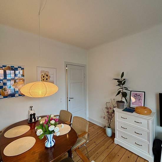 På denne attraktive beliggenhed kan denne delevenlige 2 værelses lejlighed lejes. Man bliver budt velkommen i en hyggelig entré, hvor der er adgang til stue og værelse. Derfor gør den lejligheden anvendelige til at dele. Store vinduer, der giver et skønt lysindfald. Lejligheden har flotte plankegulve. Flot og velholdt hvidt køkken, som har integreret køle-/fryseskab, nedfældet kogeplader, ovn, emhætte og integreret opvaskemaskine. Hvid bordplade og nedfældet sort køkkenvask m/armatur. Pænt badeværelse holdt i hvidt og har opbevaring un...