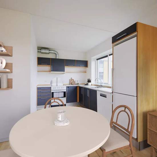 Under 10 minutter fra Skejby Centret og kun 5 kilometer fra Aarhus C finder du denne skønne 2-værelses lejlighed. Perfekt til parret eller dig, der bare gerne vil bo lækkert og tæt på det hele. Den lyse, imødekommende lejlighed disponerer over: • Entré med plads til overtøj og sko • Køkken-alrum og stue i ét med udgang til en skøn altan • Soveværelse med indbyggede skabe • Lyst badeværelse med gulvvarme, skabe og kombineret vaskemaskine og tørretumbler I lejligheden findes alt i hårde hvidevarer, og der er desuden tilhørende depotrum. ...