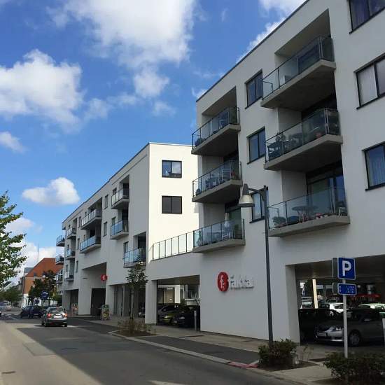 Aabybro Midtby har 59 moderne boliger, opført i 2014! Tæt ved handel, skole, hal og kollektiv transport. Boligerne opføres som rummelige lyse 2 og 3 rums boliger alle med store altaner. Elevator. Depotrum til hver bolig. I stueplan etableres erhvervslokale mod Torve Allé samt Fakta-butik i gårdrummet af bebyggelsen. Over Fakta etableres der fælles tagterrasse på 1.000m2 Interne P-pladser er primært forbeholdt erhverv. Byggeriet opføres som lavenergi byggeri, derved forventes lav udgift til varme og el. Boligerne udstyres med HTH køkken, hvid...