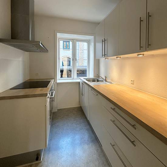 Nyrenoveret 2-værelses lejlighed i rolige omgivelser! Indretning: Lejligheden består af store og lyse rum. Her findes der blandt andet en stor stue med gode, store vinduer. Her er der rig mulighed for at have både sofaarrangement og spisebord. Der er ligeledes et stort værelse med højskabe, hvor du har rig mulighed for opbevaring. I lejligheden findes også et velholdt og stort køkken med en masse opbevaringsplads, og til sidst et stort badeværelse med alt det nødvendige. Beliggenhed: Lejligheden ligger tæt på blandt andet Sygehus Syd, Aalb...