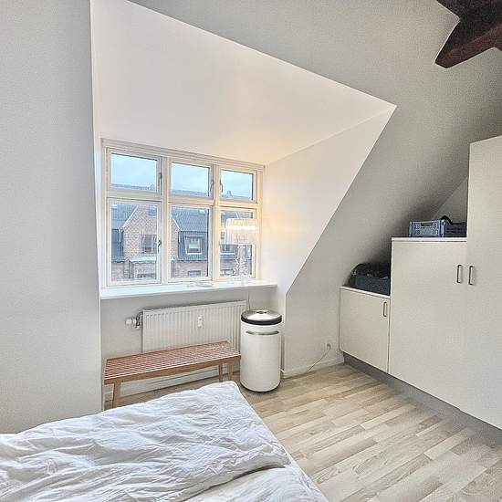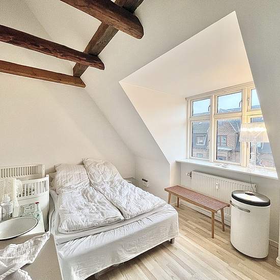 Velkommen til Østerbro 72. Her får du nu muligheden for at leje en flot 2-værelses bolig på 58 kvadratmeter. Boligens køkken er lyst og flot og medfølger opvaskemaskine, køle/fryseskab, komfur og emhætte. Boligens soveværelse har en god størrelse og medfølger en fuld væg med indbyggede skabe. Fra den rummelige fordelingsentré med god opbevaringsplads (oplagt til sko & overtøj) er der adgang til lejlighedens store badeværelse med separat bruseniche. Stuen er ligeledes godt udnyttet og med kig til de flotte fritlagte bjælker - her er der ...
