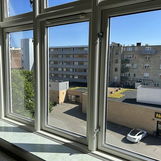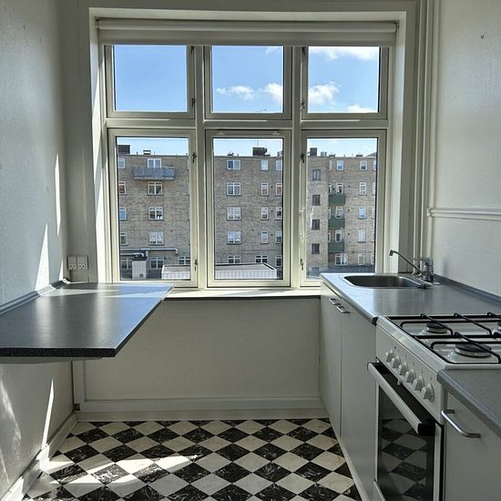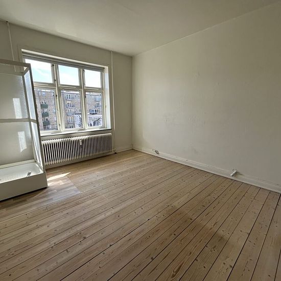 2-værelses lejlighed udlejes i Holbergsgade Lejligheden er beliggende i gaden Holbergsgade i Aalborg Centrum. Fra lejlighedens beliggenhed befinder du dig tæt på gågaderne, gode indkøbsmuligheder hvor bl.a. Netto er beliggende overfor ejendommen, Aalborg havnefront, Salling, restauranter, caféer og alt det midtbyen har at tilbyde. Lejligheden indeholder stor entré med plads til sko og overtøj. Herfra er der adgang til lejlighedens store stue som har et flot loft med stuk. Soveværelse med opsat bruseniche. Hvidt køkken med komfur, køle/frys...
